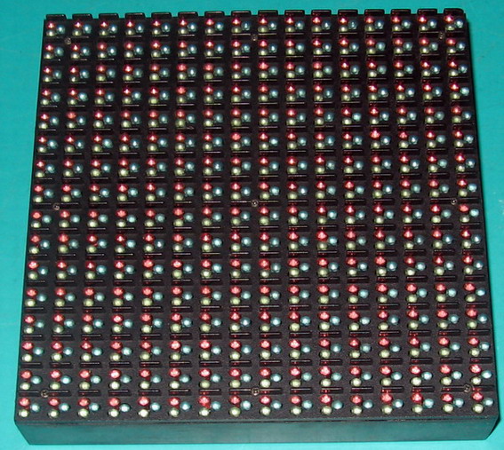 【产品特点】: 像素点中心距:10mm,像素晶片构成:1红+1绿+1蓝,模块像素点(W*H):16点*16点,每平方米像素数量:10000点